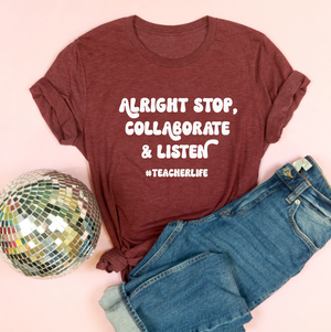 {"id":7025141284899,"title":"Alright Stop, Collaborate \u0026 Listen #teacherlife Tee","handle":"unisex-jersey-short-sleeve-tee","description":"\u003cp\u003eOur classic unisex jersey short sleeve tee fits like a well-loved favorite. Soft cotton and quality print make our customers fall in love with it over and over again. These t-shirts have-ribbed knit collars to bolster shaping. The shoulders are tapered for a better fit. Dual side seams hold the garment's shape for longer.\u003c\/p\u003e\n\u003cp\u003e🌸Made 100% Airlume combed and ring-spun cotton\u003c\/p\u003e\n\u003cp\u003e🌸 FREE SHIPPING on orders over \u003cspan data-mce-fragment=\"1\"\u003e$145\u003c\/span\u003e\u003c\/p\u003e\n\u003cp\u003e\u003cspan data-mce-fragment=\"1\"\u003e🌸 Our shirts are made in the USA\u003c\/span\u003e\u003c\/p\u003e\n\u003ch5 data-mce-fragment=\"1\"\u003eSizing\u003c\/h5\u003e\n\u003cp data-mce-fragment=\"1\"\u003e🌸Styled as the perfect boyfriend tee → Unisex fit\u003c\/p\u003e\n\u003cp data-mce-fragment=\"1\"\u003e🌸Pre-shrunk to minimize shrinkage (that's what she said) 😜\u003c\/p\u003e","published_at":"2024-07-18T05:05:32-07:00","created_at":"2024-07-18T05:05:26-07:00","vendor":"Printify","type":"T-Shirt","tags":["Cotton","Crew neck","DTG","Men's Clothing","Neck Labels","Regular fit","T-shirts","TikTok","Unisex","Women's Clothing"],"price":3700,"price_min":3700,"price_max":3700,"available":true,"price_varies":false,"compare_at_price":null,"compare_at_price_min":0,"compare_at_price_max":0,"compare_at_price_varies":false,"variants":[{"id":40522149756963,"title":"Athletic Heather \/ S","option1":"Athletic Heather","option2":"S","option3":null,"sku":"30944718362849207462","requires_shipping":true,"taxable":true,"featured_image":{"id":33272938037283,"product_id":7025141284899,"position":2,"created_at":"2024-07-18T07:46:09-07:00","updated_at":"2024-07-18T07:46:12-07:00","alt":null,"width":1024,"height":1024,"src":"\/\/www.saturdaymorningpancakes.com\/cdn\/shop\/files\/Screenshot2024-07-18at7.42.18AM.png?v=1721313972","variant_ids":[40522149756963,40522149855267,40522149986339,40522150117411,40522150248483,40522150379555]},"available":true,"name":"Alright Stop, Collaborate \u0026 Listen #teacherlife Tee - Athletic Heather \/ S","public_title":"Athletic Heather \/ S","options":["Athletic Heather","S"],"price":3700,"weight":100,"compare_at_price":null,"inventory_quantity":-1,"inventory_management":null,"inventory_policy":"deny","barcode":null,"featured_media":{"alt":null,"id":25971399950371,"position":2,"preview_image":{"aspect_ratio":1.0,"height":1024,"width":1024,"src":"\/\/www.saturdaymorningpancakes.com\/cdn\/shop\/files\/Screenshot2024-07-18at7.42.18AM.png?v=1721313972"}},"requires_selling_plan":false,"selling_plan_allocations":[]},{"id":40522149789731,"title":"Black \/ S","option1":"Black","option2":"S","option3":null,"sku":"14819242427685882748","requires_shipping":true,"taxable":true,"featured_image":{"id":33272937938979,"product_id":7025141284899,"position":3,"created_at":"2024-07-18T07:46:09-07:00","updated_at":"2024-07-18T07:46:12-07:00","alt":null,"width":994,"height":998,"src":"\/\/www.saturdaymorningpancakes.com\/cdn\/shop\/files\/Screenshot2024-07-18at7.42.31AM.png?v=1721313972","variant_ids":[40522149789731,40522149888035,40522150019107,40522150150179,40522150281251,40522150412323]},"available":true,"name":"Alright Stop, Collaborate \u0026 Listen #teacherlife Tee - Black \/ S","public_title":"Black \/ S","options":["Black","S"],"price":3700,"weight":100,"compare_at_price":null,"inventory_quantity":1,"inventory_management":null,"inventory_policy":"deny","barcode":null,"featured_media":{"alt":null,"id":25971400015907,"position":3,"preview_image":{"aspect_ratio":0.996,"height":998,"width":994,"src":"\/\/www.saturdaymorningpancakes.com\/cdn\/shop\/files\/Screenshot2024-07-18at7.42.31AM.png?v=1721313972"}},"requires_selling_plan":false,"selling_plan_allocations":[]},{"id":40522149822499,"title":"Maroon \/ S","option1":"Maroon","option2":"S","option3":null,"sku":"28576600883043156878","requires_shipping":true,"taxable":true,"featured_image":{"id":33272937971747,"product_id":7025141284899,"position":4,"created_at":"2024-07-18T07:46:09-07:00","updated_at":"2024-07-18T07:46:12-07:00","alt":null,"width":1050,"height":1054,"src":"\/\/www.saturdaymorningpancakes.com\/cdn\/shop\/files\/Screenshot2024-07-18at7.42.25AM.png?v=1721313972","variant_ids":[40522149822499,40522149920803,40522150051875,40522150182947,40522150314019,40522150445091]},"available":true,"name":"Alright Stop, Collaborate \u0026 Listen #teacherlife Tee - Maroon \/ S","public_title":"Maroon \/ S","options":["Maroon","S"],"price":3700,"weight":100,"compare_at_price":null,"inventory_quantity":1,"inventory_management":null,"inventory_policy":"deny","barcode":null,"featured_media":{"alt":null,"id":25971400048675,"position":4,"preview_image":{"aspect_ratio":0.996,"height":1054,"width":1050,"src":"\/\/www.saturdaymorningpancakes.com\/cdn\/shop\/files\/Screenshot2024-07-18at7.42.25AM.png?v=1721313972"}},"requires_selling_plan":false,"selling_plan_allocations":[]},{"id":40522149855267,"title":"Athletic Heather \/ M","option1":"Athletic Heather","option2":"M","option3":null,"sku":"26526242754430249339","requires_shipping":true,"taxable":true,"featured_image":{"id":33272938037283,"product_id":7025141284899,"position":2,"created_at":"2024-07-18T07:46:09-07:00","updated_at":"2024-07-18T07:46:12-07:00","alt":null,"width":1024,"height":1024,"src":"\/\/www.saturdaymorningpancakes.com\/cdn\/shop\/files\/Screenshot2024-07-18at7.42.18AM.png?v=1721313972","variant_ids":[40522149756963,40522149855267,40522149986339,40522150117411,40522150248483,40522150379555]},"available":true,"name":"Alright Stop, Collaborate \u0026 Listen #teacherlife Tee - Athletic Heather \/ M","public_title":"Athletic Heather \/ M","options":["Athletic Heather","M"],"price":3700,"weight":100,"compare_at_price":null,"inventory_quantity":0,"inventory_management":n