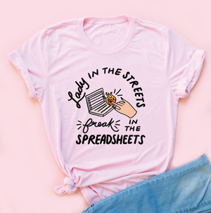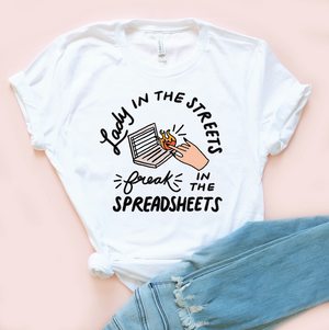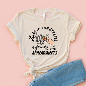 {"id":7104442925091,"title":"Lady In The Streets, Freak In The Spreadsheets Unisex Tee","handle":"lady-in-the-streets-freak-in-the-spreadsheets-unisex-tee","description":"\u003cp\u003eOur classic unisex jersey short sleeve tee fits like a well-loved favorite. Soft cotton and quality print make our customers fall in love with it over and over again. These t-shirts have-ribbed knit collars to bolster shaping. The shoulders are tapered for a better fit. Dual side seams hold the garment's shape for longer.\u003c\/p\u003e\n\u003cp\u003e🌸 FREE SHIPPING on orders over \u003cspan data-mce-fragment=\"1\"\u003e$145\u003c\/span\u003e\u003c\/p\u003e\n\u003cp\u003e\u003cspan data-mce-fragment=\"1\"\u003e🌸 Our shirts are made in the USA\u003c\/span\u003e\u003c\/p\u003e\n\u003ch5 data-mce-fragment=\"1\"\u003eSizing\u003c\/h5\u003e\n\u003cp data-mce-fragment=\"1\"\u003e🌸Styled as the perfect oversized tee → Unisex fit\u003c\/p\u003e","published_at":"2025-04-22T05:35:58-07:00","created_at":"2025-04-22T05:35:54-07:00","vendor":"Printify","type":"T-Shirt","tags":["casual wear","friendship gift","funny graphic tee","gift for her","laid back style","lifestyle tee","office humor shirt","quirky apparel","rainy day style","sassy t-shirt","unisex shirt","work from home","workplace outfit"],"price":3800,"price_min":3800,"price_max":3800,"available":true,"price_varies":false,"compare_at_price":null,"compare_at_price_min":0,"compare_at_price_max":0,"compare_at_price_varies":false,"variants":[{"id":40805869846563,"title":"Athletic Heather \/ S","option1":"Athletic Heather","option2":"S","option3":null,"sku":"12750207635025920149","requires_shipping":true,"taxable":true,"featured_image":{"id":34257208180771,"product_id":7104442925091,"position":3,"created_at":"2025-04-22T05:41:06-07:00","updated_at":"2025-04-22T05:42:05-07:00","alt":null,"width":1046,"height":1046,"src":"\/\/www.saturdaymorningpancakes.com\/cdn\/shop\/files\/LadyIntheStreetsGrey.png?v=1745325725","variant_ids":[40805869846563,40805870043171,40805870239779,40805870436387,40805870632995,40805870829603]},"available":true,"name":"Lady In The Streets, Freak In The Spreadsheets Unisex Tee - Athletic Heather \/ S","public_title":"Athletic Heather \/ S","options":["Athletic Heather","S"],"price":3800,"weight":100,"compare_at_price":null,"inventory_quantity":1,"inventory_management":null,"inventory_policy":"deny","barcode":null,"featured_media":{"alt":null,"id":26676629012515,"position":3,"preview_image":{"aspect_ratio":1.0,"height":1046,"width":1046,"src":"\/\/www.saturdaymorningpancakes.com\/cdn\/shop\/files\/LadyIntheStreetsGrey.png?v=1745325725"}},"requires_selling_plan":false,"selling_plan_allocations":[]},{"id":40805869879331,"title":"Natural \/ S","option1":"Natural","option2":"S","option3":null,"sku":"17896007394466035539","requires_shipping":true,"taxable":true,"featured_image":{"id":34257208246307,"product_id":7104442925091,"position":2,"created_at":"2025-04-22T05:41:06-07:00","updated_at":"2025-04-22T05:42:05-07:00","alt":null,"width":1032,"height":1034,"src":"\/\/www.saturdaymorningpancakes.com\/cdn\/shop\/files\/LadyIntheStreetsNatural.png?v=1745325725","variant_ids":[40805869879331,40805870075939,40805870272547,40805870469155,40805870665763,40805870862371]},"available":true,"name":"Lady In The Streets, Freak In The Spreadsheets Unisex Tee - Natural \/ S","public_title":"Natural \/ S","options":["Natural","S"],"price":3800,"weight":100,"compare_at_price":null,"inventory_quantity":1,"inventory_management":null,"inventory_policy":"deny","barcode":null,"featured_media":{"alt":null,"id":26676628979747,"position":2,"preview_image":{"aspect_ratio":0.998,"height":1034,"width":1032,"src":"\/\/www.saturdaymorningpancakes.com\/cdn\/shop\/files\/LadyIntheStreetsNatural.png?v=1745325725"}},"requires_selling_plan":false,"selling_plan_allocations":[]},{"id":40805869912099,"title":"Pink \/ S","option1":"Pink","option2":"S","option3":null,"sku":"10457297463431790346","requires_shipping":true,"taxable":true,"featured_image":{"id":34257208213539,"product_id":7104442925091,"position":4,"created_at":"2025-04-22T05:41:06-07:00","updated_at":"2025-04-22T05:41:08-07:00","alt":null,"width":1004,"height":1010,"src":"\/\/www.saturdaymorningpancakes.com\/cdn\/shop\/files\/LadyIntheStreetsPink.png?v=1745325668","variant_ids":[40805869912099,40805870108707,40805870305315,40805870501923,40805870698531,40805870895139]},"available":true,"name":"Lady In The Streets, Freak In The Spreadsheets Unisex Tee - Pink \/ S","public_title":"Pink \/ S","options":["Pink","S"],"price":3800,"weight":100,"compare_at_price":null,"inventory_quantity":0,"inventory_management":null,"inventory_policy":"deny","barcode":null,"featured_media":{"alt":null,"id":26676629078051,"position":4,"preview_image":{"aspect_ratio":0.994,"height":1010,"width":1004,"src":"\/\/www.saturdaymorningpancakes.com\/cdn\/shop\/files\/LadyIntheStreetsPink.png?v=1745325668"}},"requires_selling_plan":false,"selling_plan_allocations":[]},{"id":40805869944867,"title":"White \/ S","option1":"White","option2":"S","option3":null,"sku":"17319778416834935931","requires_shipping":true,"taxable":true,"featured_image":{"id":34257208344611,"product_id":7104442925091,"position":6,"created_at":"2025-04-22T05:41:06-07:00","updated_at":"2025-04-22T05:41:08-07:00","alt":null,"width":1052,"height":1054,"src":"\/\/www.saturdaymorningpancakes.com\/cdn\/shop\/files\/LadyIntheStreetswhite.png?v=1745325668","variant_ids":[40805869944867,40805870141475,40805870338083,40805870534691,40805870731299,40805870927907]},"available":true,"name":"Lady In The Streets, Freak In The Spreadsheets Unisex Tee - White \/ S","public_title":"White \/ S","options":["White","S"],"price":3800,"weight":100,"compare_at_price":null,"inventory_quantity":1,"inventory_management":null,"inventory_policy":"deny","barcode":null,"featured_media":{"alt":null,"id":26676629143587,"position":6,"preview_image":{"aspect_ratio":0.998,"height":1054,"width":1052,"src":"\/\/www.